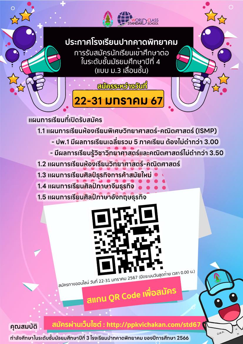 สมัครผ่าน QR Code หรือทาง https://ppkvichakan.com/std67/