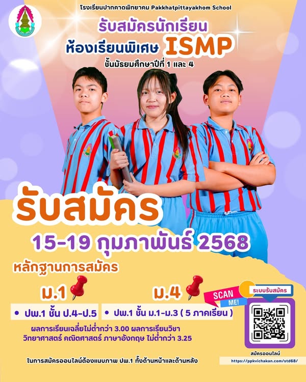 รับสมัครนักเรียนห้องเรียนพิเศษ ISMP ประจำปีการศึกษา 2568 โรงเรียนปากคาดพิทยาคม